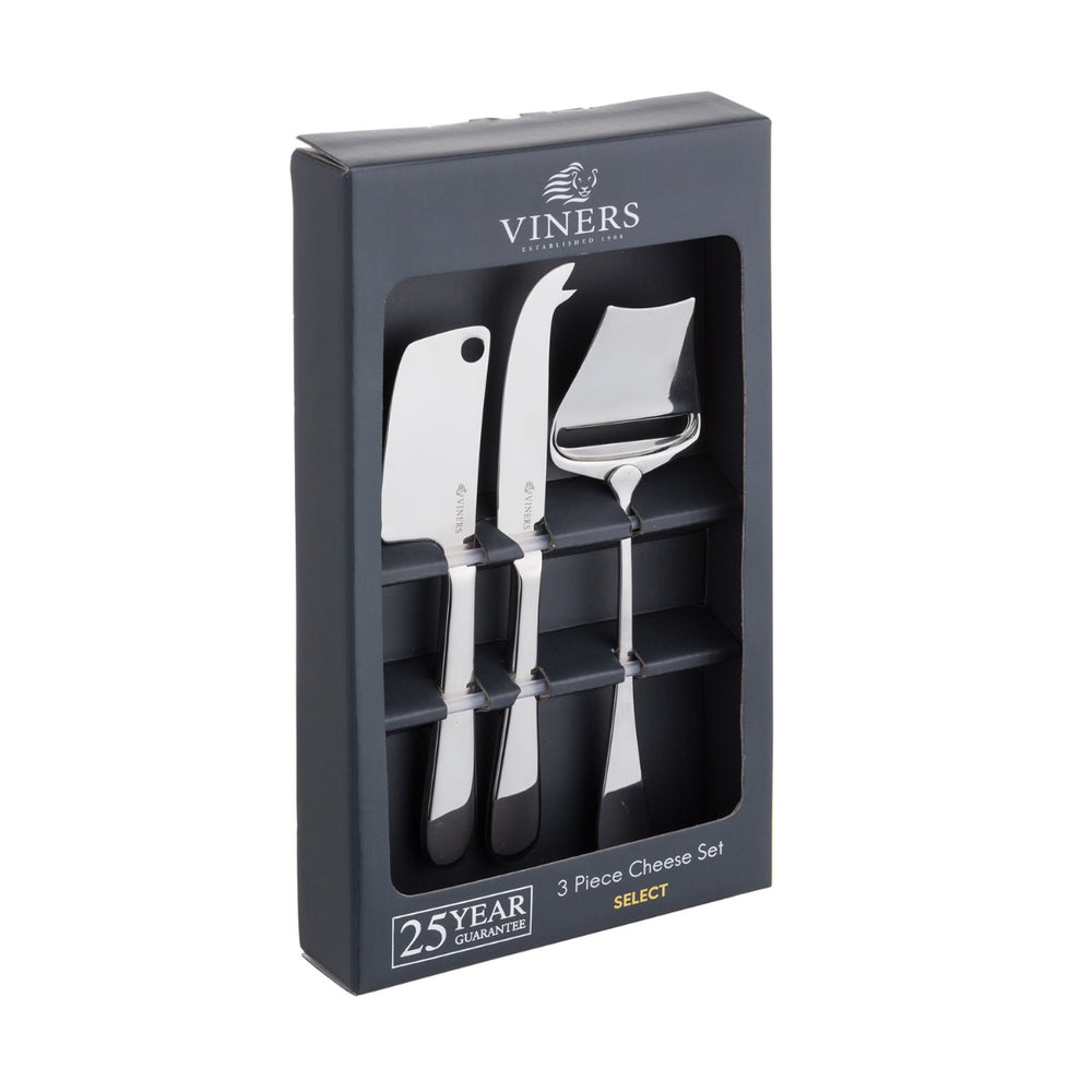 Entertain your friends in style with this set of three luxurious cheese knives! Everything you could need to serve all types of delicious cheese, these knives are made from mirrored stainless steel and are dishwasher safe to make cleaning up a breeze. This set contains a pronged knife for soft cheeses, a tougher knife for hard cheeses and a slicing knife for serving thin, even portions!