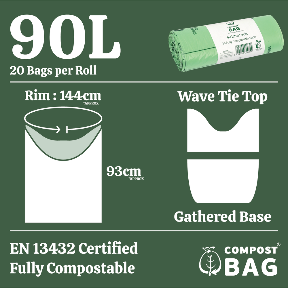 Environmentally friendly, fully compostable (EN13432) and biodegradable, Compost Bag brand liners are the perfect fit! Supplied in rolls of 20 bags with easy-tie wave top handles, they are completely environmentally friendly so suitable for both food and general waste. These bags feature a "star-sealed" base, whereby the base of the bag is gathered and sealed in such a way as to provide extra strength. This helps to prevent the bag breaking when full of waste, but does not affect the overall capacity of the bag.