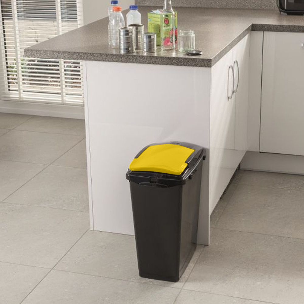 With a yellow-coloured lid, the bins are easily recognisable and feature an interlocking system for connecting different coloured containers together, making for a space-saving recycling system. The large lifting lid makes for quick and effortless disposal of all your waste.