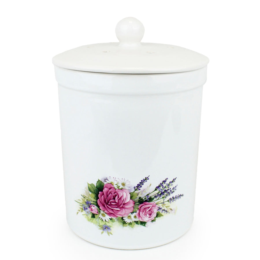Disposing of food waste couldn’t be easier with this beautiful, rose print ceramic food caddy! This caddy is fully glazed inside so it can be used with or without bags, however, using the recommended 5L or 6L size cornstarch bags is known to be more convenient and keeps your caddy as clean as possible (these can be purchased separately).