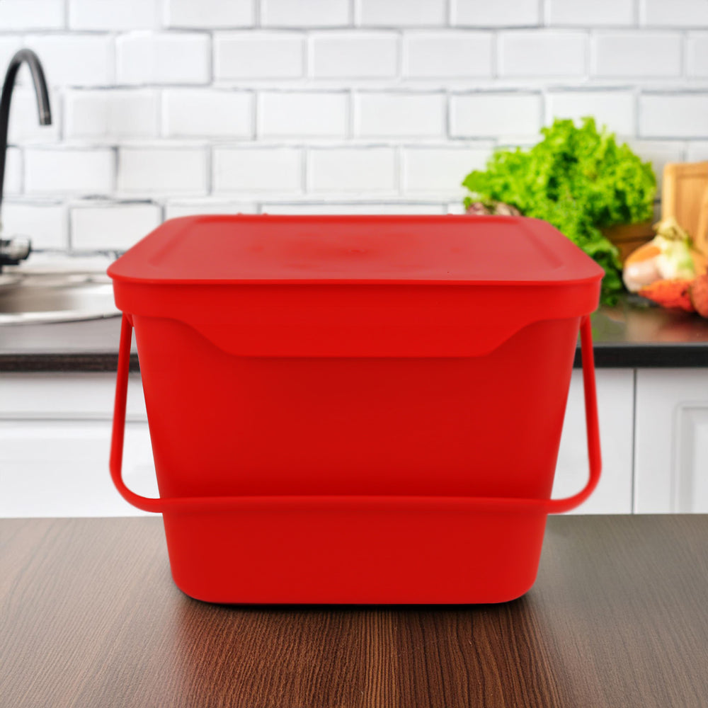 Upgrade your kitchen waste management with this innovative red food waste caddy! A stylish, eco-friendly solution that simplifies your daily routine whilst contributing to a cleaner planet. Crafted with care in Britain, this caddy boasts a durable plastic construction with a smooth, wipe-clean interior for effortless maintenance. The sleek red exterior blends seamlessly with your kitchen décor, and the convenient handle & lightweight design ensures easy transportation. Specially designed to hold your compostable bags in place, without stretching and breaking when you change the bag.