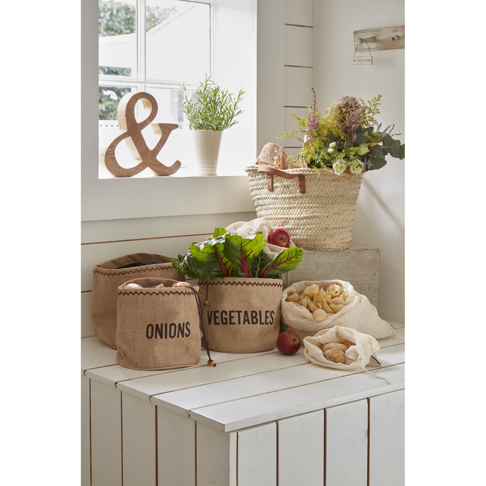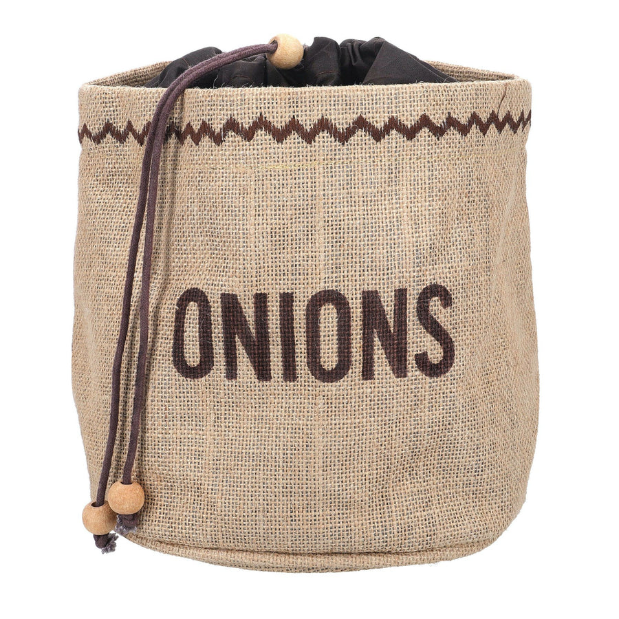 This Natural Elements onion jute sack is perfect for storing your onions and other vegetables. The outside is made from natural hessian and filled with a blackout breathable liner to ensure your onions are protected from the light to prevent them sprouting. Featuring a drawstring top to keep contents fresh, the bag can also be hung to save space.