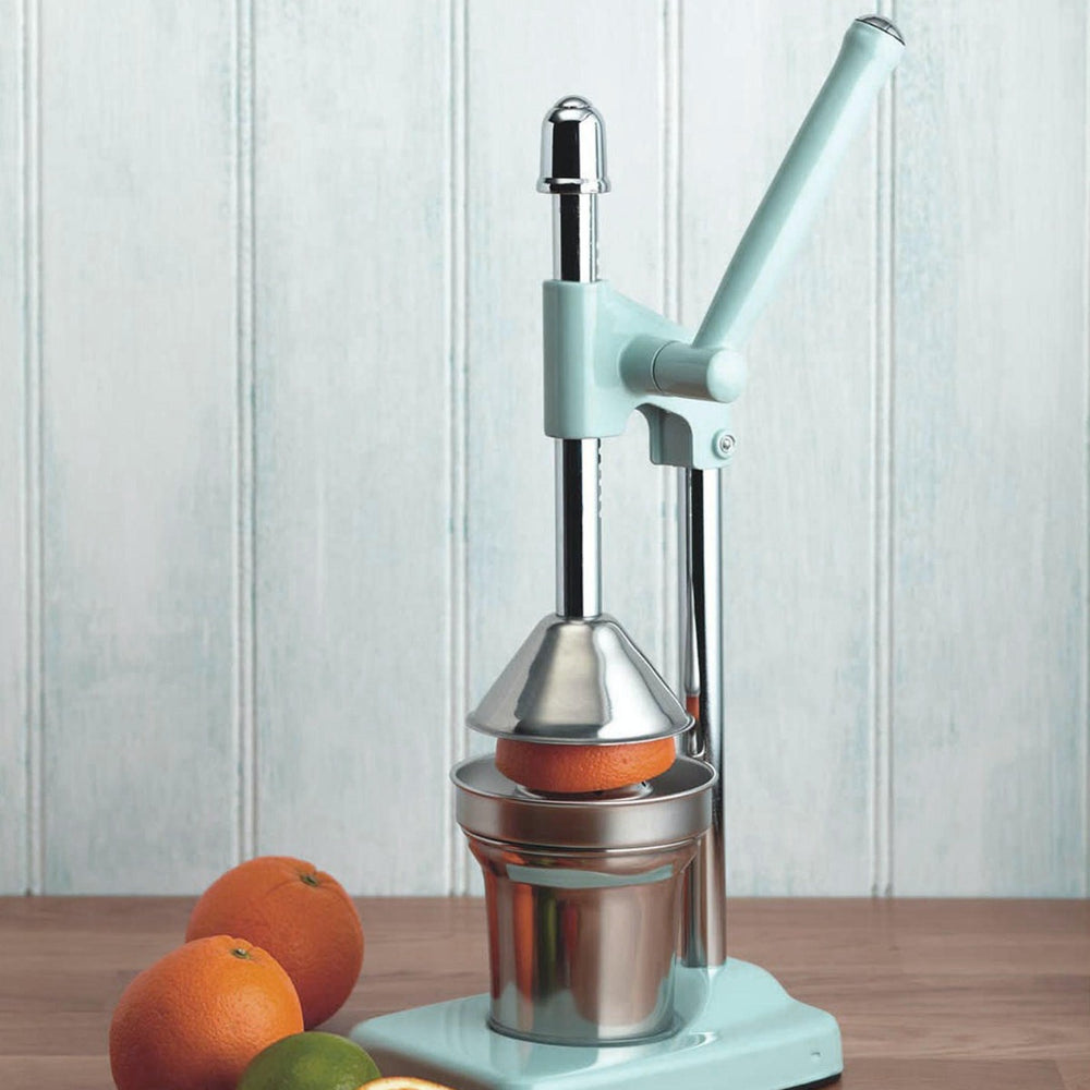 Nothing beats the taste of freshly squeezed, homemade juice and it could not be easier to make than with the Living Nostalgia juicer. This juicer is perfect for juicing oranges, lemons, limes, and grapefruits as the lever-arm allows you to juice the fruit with one easy squeeze, the steel strainer makes it easy to remove pulp and seeds, and a collector cup is also included to capture the juice.