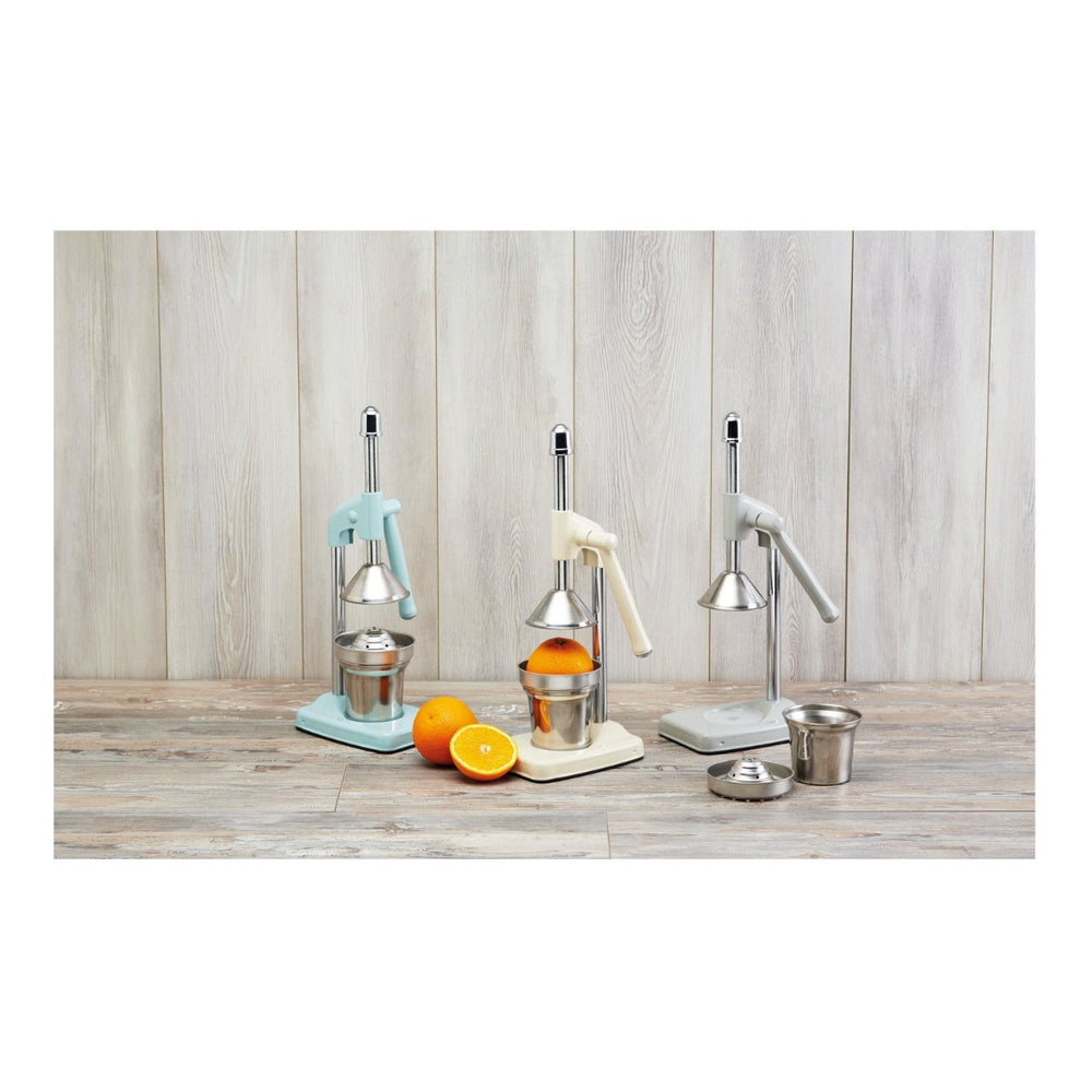 Nothing beats the taste of freshly squeezed, homemade juice and it could not be easier to make than with the Living Nostalgia juicer. This juicer is perfect for juicing oranges, lemons, limes, and grapefruits as the lever-arm allows you to juice the fruit with one easy squeeze, the steel strainer makes it easy to remove pulp and seeds, and a collector cup is also included to capture the juice.