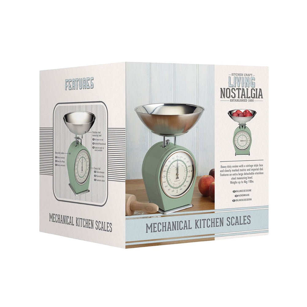Ditch your digital kitchen scales in favour of these elegant mechanical kitchen scales from the Living Nostalgia range. Designed with both form and function in mind, featuring an enameled vintage colour casing, brushed silver detailing, and easy to read metric and imperial dials, these scales will sit beautifully on your kitchen surfaces.