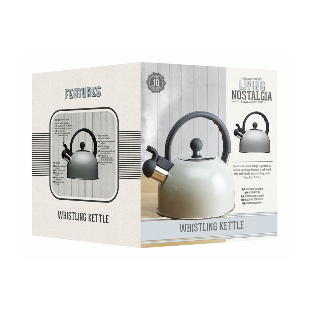 Featuring a soft touch stay cool handle and whistling spout, this 1.4 litre French grey whistling kettle is great to use to make a hot beverage. What is more, it does not matter what type of stove you have as this kettle is suitable for all hobs, including induction ones.
